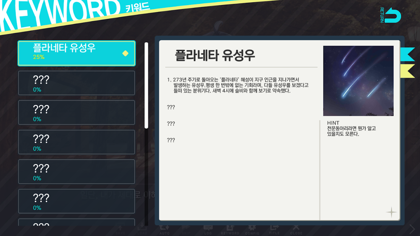 -U kunt hints krijgen over toekomstige opties via de verzamelde trefwoorden, en soms kunt u trefwoorden gebruiken om vergrendelde opties te ontgrendelen.