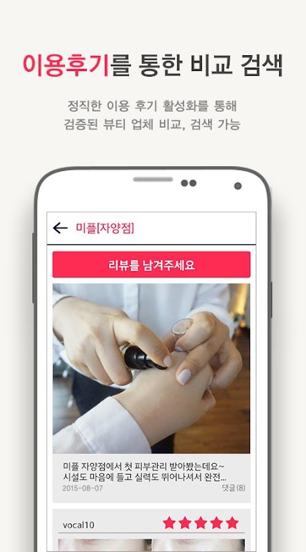 ▶정직하고 리얼한 이용 후기를 통해 다른 사용자들도 검증된 뷰티 업체를 비교,검색 후 이용이 가능합니다.