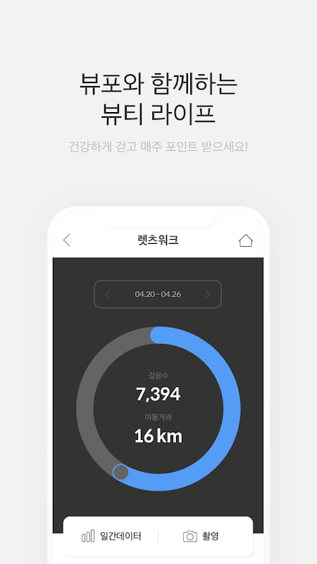 • 신체 활동 : 렛츠워크 서비스 걸음수, 이동거리 표시