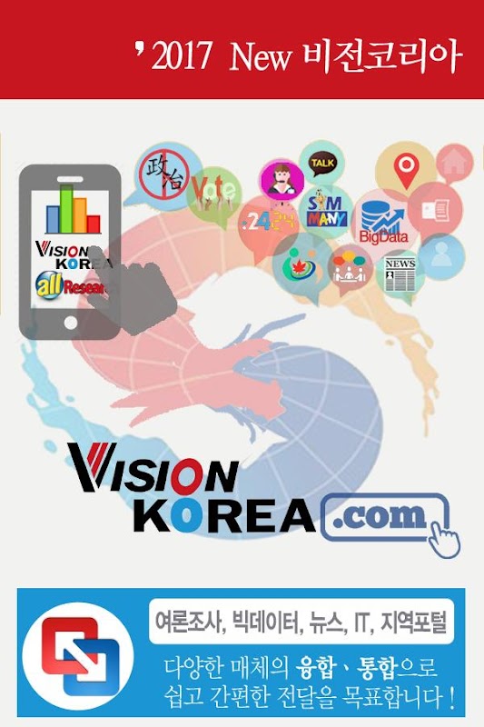 비전코리아는 지난 20여년 이상을 여론조사, 빅데이터, 뉴스, IT, 지역포털, 선거컨설팅 분야에 종사하여 전문기술을 개발, 확보해오고 있습니다.