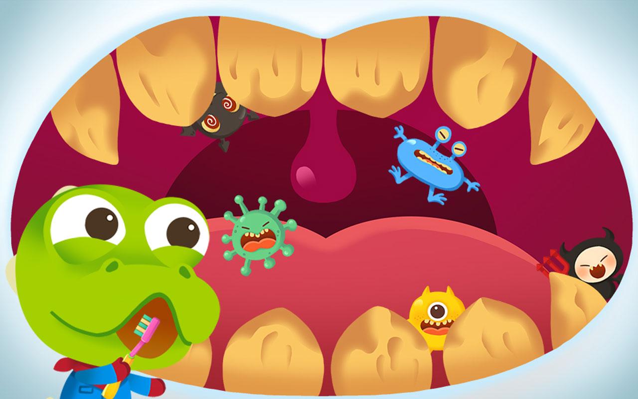 충치 세균들을 무찌르고 깨끗한 이를 위해 양치질해요!