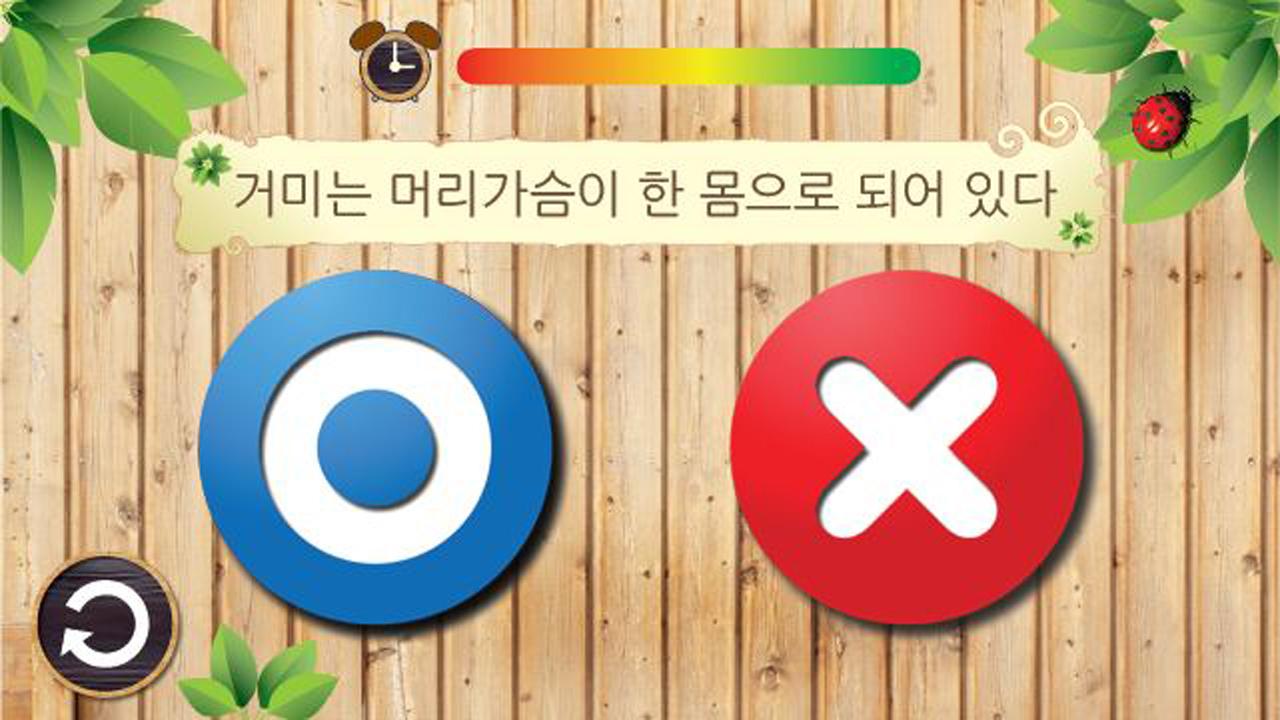 ✓ OX 스피드 퀴즈 : 앱(App)에서 체험한 정보들을 활용해 각 곤충들의 OX 스피드 퀴즈를 풀 수 있으며 자연스럽게 학습을 유도합니다.