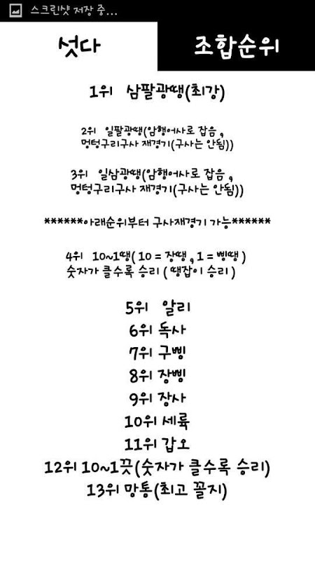 섯다족보(간편버전) - 섯다 족보 초보 2.0