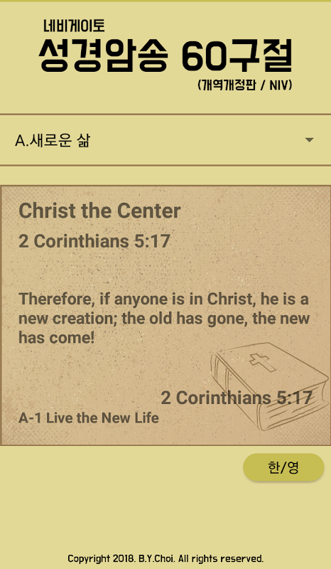 APKPure gebruikt handtekeningverificatie om virusvrije 성경암송 - 네비게이토 60구절(개역개정 / NIV) APK downloads voor u te garanderen.