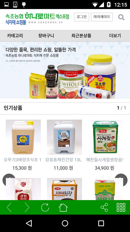 '속초농협 하나로마트'가 운영하는 식자재 쇼핑몰 어플리케이션