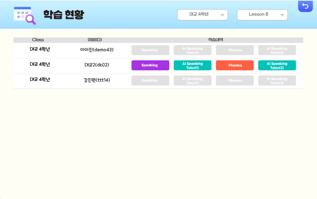 U kunt het volgende doen: ‘수업 도구’ en ‘학습 현황’ Het apparaat is niet goed.