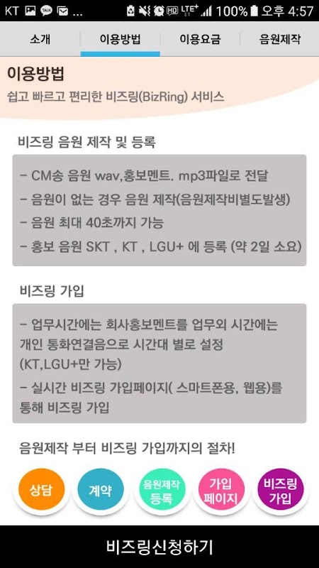 기업용통화연결음 스마트비즈링에서 신청하십시요