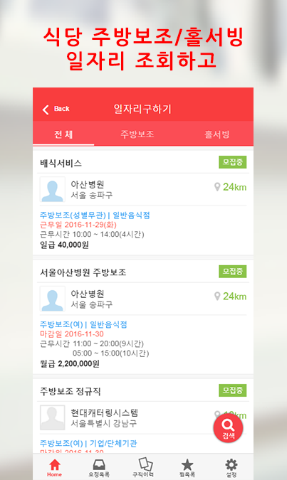 실시간매칭/알림 구인구직 서비스 - 식당일당