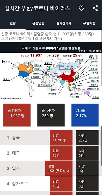 코로나 바이러스 , 중국 우한 발병한 바이러스에 관련된 기사와 유튜브의 내용을 실시간으로 제공하는