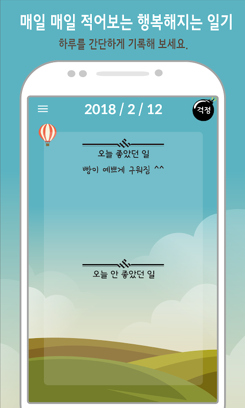 매일 좋았던 일과 안 좋았던 일을 간편하게 기록할 수 있습니다.