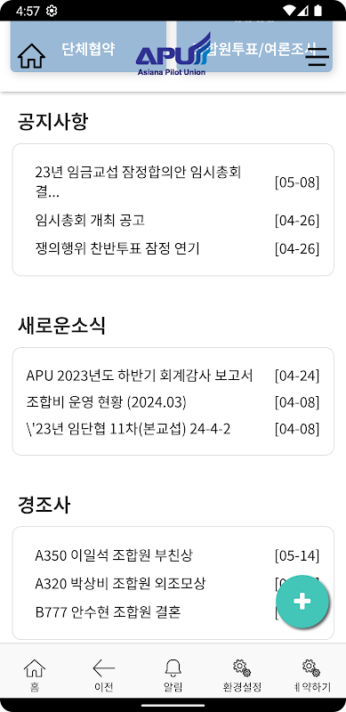 Dit is de vakbondsapp voor piloten van Asiana Airlines.