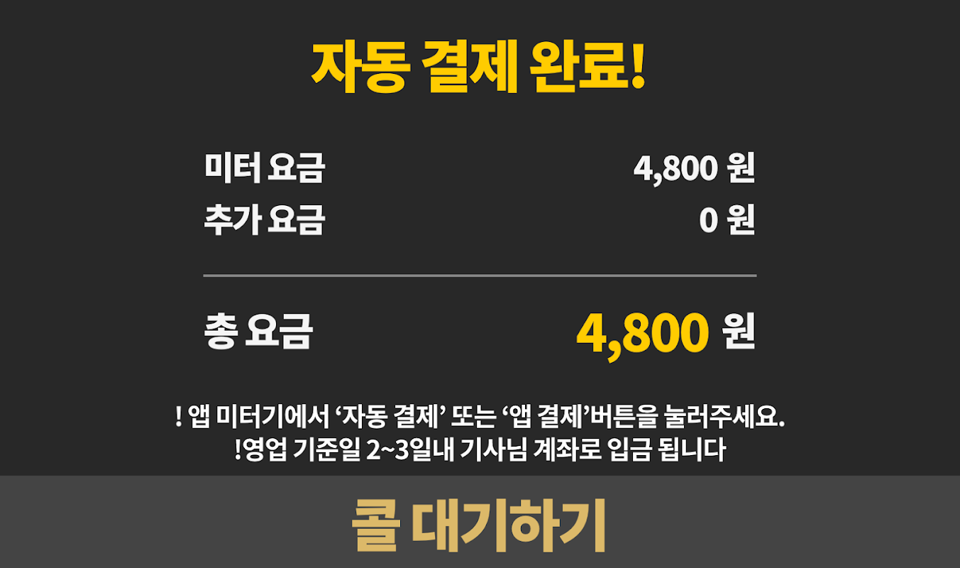 Op het oproepontvangstscherm is de directe betaling geel gekleurd en de automatische betaling blauw.