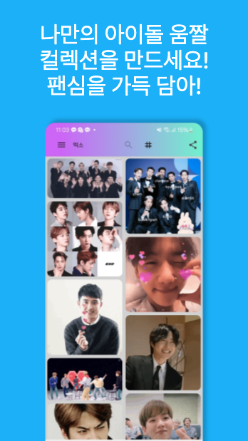 Je kunt dynamische en levendige gifs van verschillende K-POP-idolen downloaden, delen en ervan genieten.