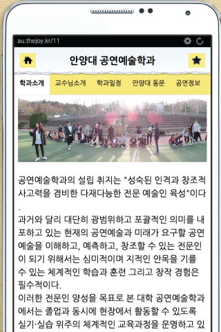 본 어플리케이션은 안양대 공연예술학과 학생들의 커뮤니티를 위한 공간으로서,