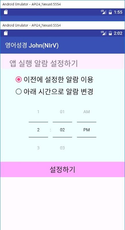 한편 NIV Bible이 ‘성인용’이라면 NIrV(New International Reader's Version) Bible은 ‘어린이용’에 해당합니다. NIrV Bible은 NIV Bible과 내용면에서는 같지만 어휘 수준과 문장길이 등이 어린이 눈높이에 맞춘 쉬운 영어로 기술되어 있습니다. 그러므로 우리와 같은 초급 영어학습자들 NIrV Bible로 암송하는 것이 매우 적절합니다. 본 애플리케이션은 초급자용으로는 NIrV Bible을 이용하고, 중급이상의 영어 학습자들을 위해서는 NIV Bible을 이용할 계획입니다. 또한 자연스러운 우리말 문장을 위해서는 '현대인의 성경(KLB)'과 개역한글(KRV)'을 인용하였습니다.