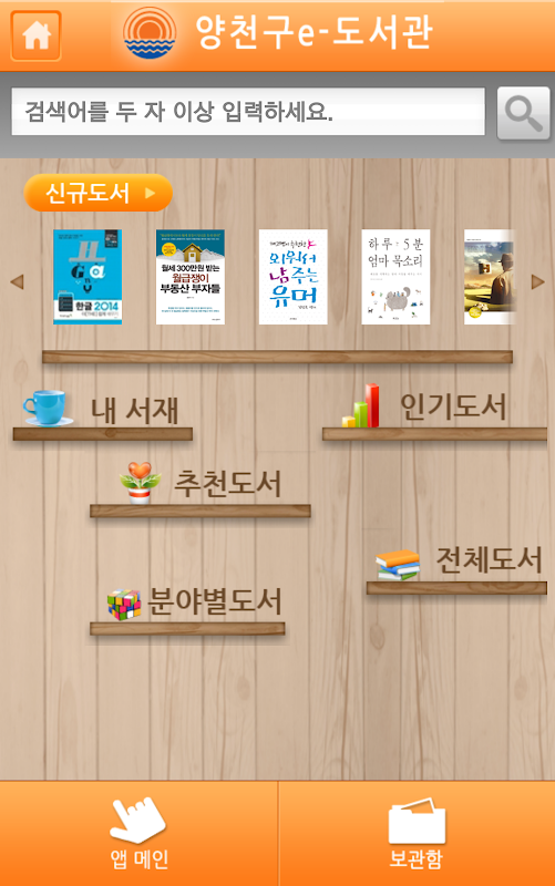 또한 급증하는 스마트폰과 태블릿 PC 사용자를 위해 ‘양천구 e-도서관’ 전용 앱 서비스를 시작합니다. 『양천구 e-도서관』 앱 서비스는 무선인터넷(Wi-Fi) 또는 3G 이동통신망을 통해서 스마트폰이나 태블릿 PC로 원하는 전자책을 바로 대출, 다운로드 받아서 시간과 장소에 구애받지 않고 전자책을 이용할 수 있게 됩니다.
