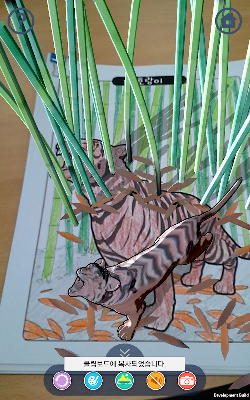 3. Nadat u de afgedrukte afbeelding hebt geverfd, kunt u de toepassing 'Eduul Coloring' gebruiken en de afdruk laten schijnen met de camera.U kunt zien hoe de dieren die ik heb geschilderd als magisch leven.