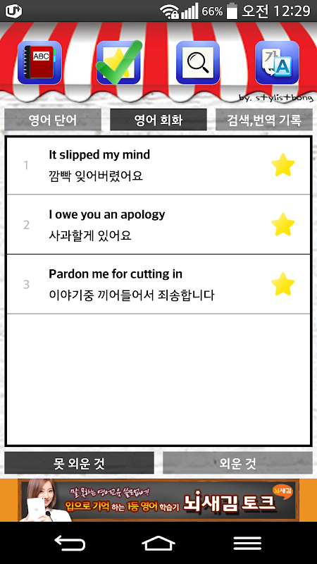 중요한 단어들을 스타 표시(별 표시)를 하고 계속 해서 공부하거나, 중요한 영 단어, 영 회화 등을 기록하여 빠르고 쉽게 볼 수 있다.
