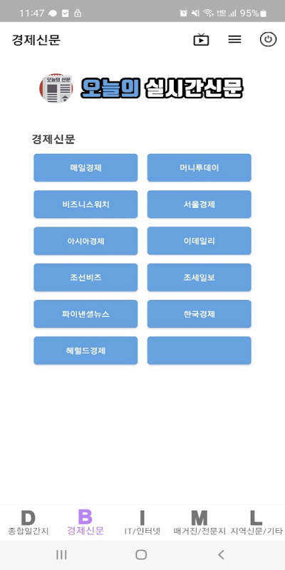 오늘의 실시간신문- 언론사 링크 제공 1.0