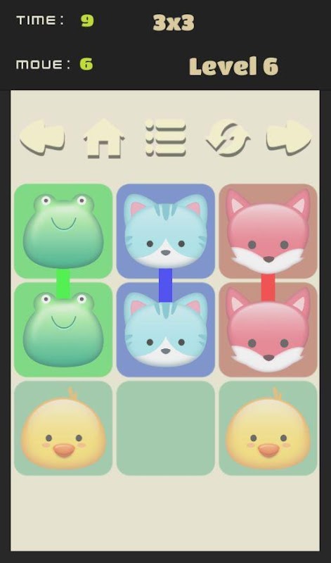 같은 색상을 동물들을 연결 하는 퍼즐게임 입니다.