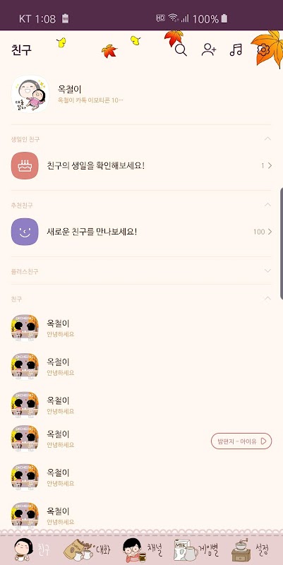 테마 적용하기 버튼을 누르시면 카카오톡 테마가 적용됩니다