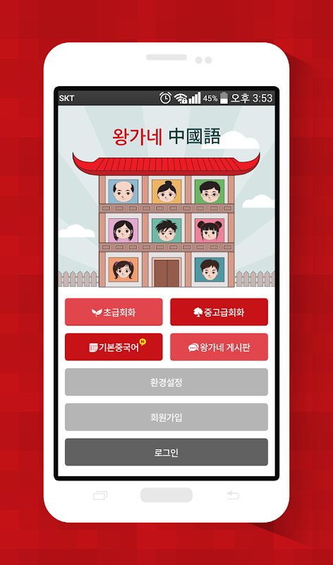 왕가네 중국어는 왕가네 가족을 통해서 중국어의 입문, 기초, 초급, 중고급, 비즈니스 회화를 배울 수 있는 중국어 회화전문 교육 앱/어플입니다.
