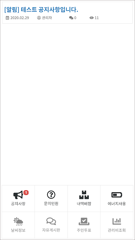 용산 파크타워 아파트 입주민용 생활편의 모바일 앱