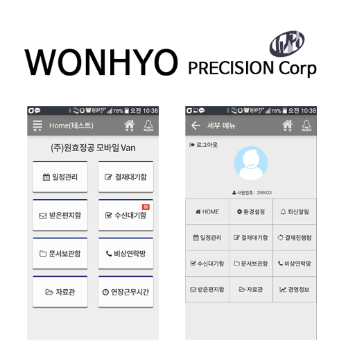 Mobile Van Wonhyo hole is een toepassing die overal in de wereld kan worden met behulp van een smartphone om de status van de zaken van het bedrijf te controleren en af te handelen.