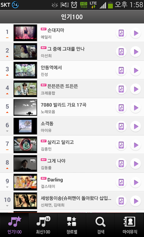 ※ 무료음악감상 어플은 '음악천국'을 많이 이용해주세요.