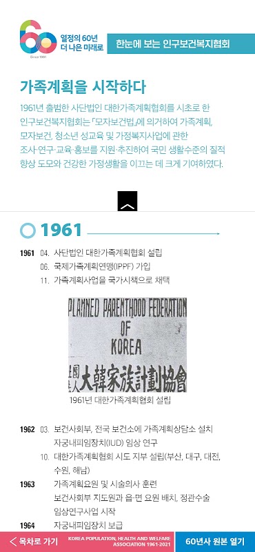 De 60-jarige geschiedenis van de Population Health and Welfare Association is een mobiele informatiedienst die de 60-jarige geschiedenis en prestaties van de vereniging samenvat.