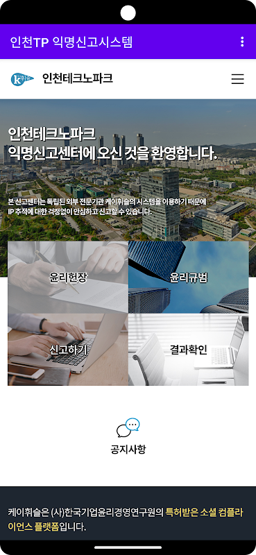Het Incheon TP Anonymous Reporting System is een APP waarmee interne medewerkers of externe belanghebbenden met vertrouwen corruptie kunnen melden.