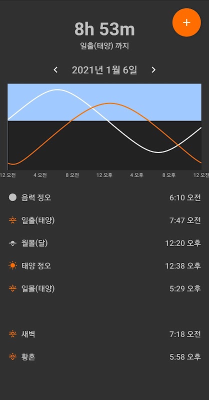 일출일몰시간 : 월출월몰시간 : 태양 달 정오시간 1.10