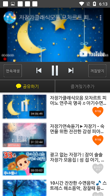 자장가 플레이 중간에 광고 나오지 않아서 계속 연속으로 들려줄 수 있습니다.