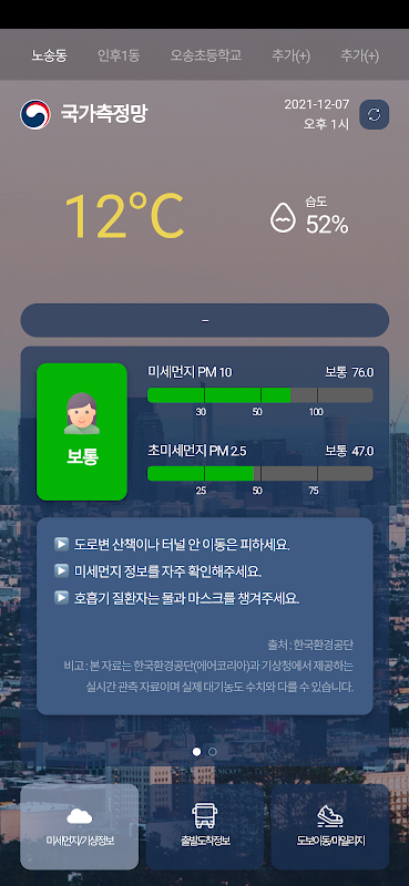 - De verstrekte lucht- en weersinformatie zijn realtime observatiegegevens die zijn verstrekt door de Korea Environment Corporation (Air Korea) en de Korea Meteorological Administration en gegevens van een eersteklas meetsensor die is gecertificeerd door het ministerie van Milieu, en geeft mogelijk niet nauwkeurig de werkelijke atmosferische concentratie.