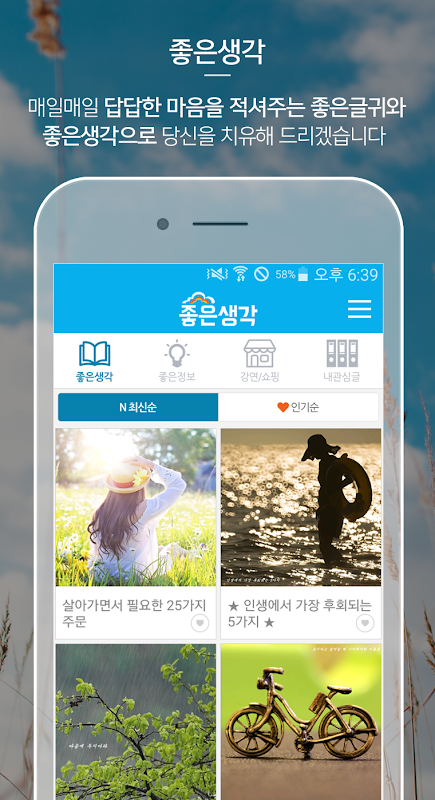 좋은 생각 앱은 마음이 편안해지는 좋은 글과 인생 명언, 짧고 좋은 글귀와 더불어