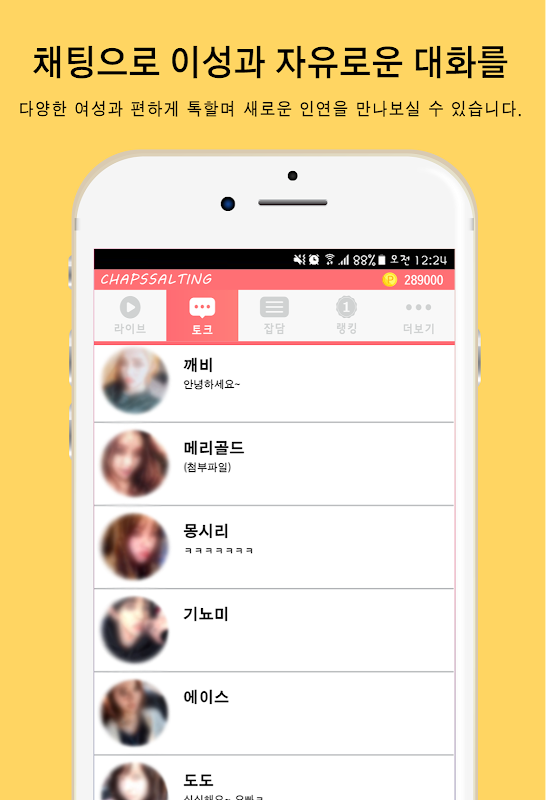 누구나 간편하게 할수있는 1:1 영상채팅,화상채팅 찹쌀팅과 함께 즐거운 대화 하세요~