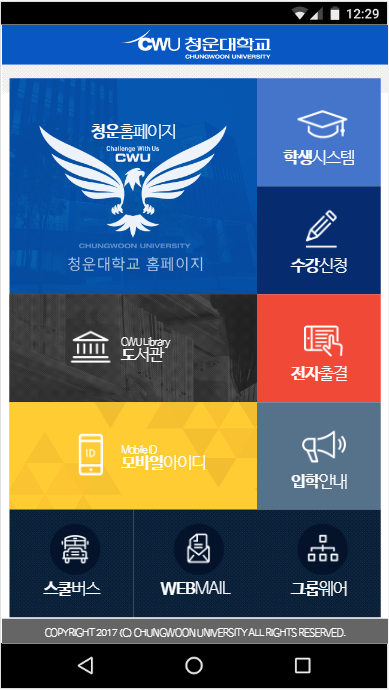 청운 대학교 공식 안드로이드 어플리케이션 입니다.