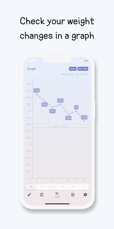Het is een app waarmee u in één oogopslag de geregistreerde gegevens kunt bekijken en in één oogopslag de gewichtsverandering op datum kunt zien.