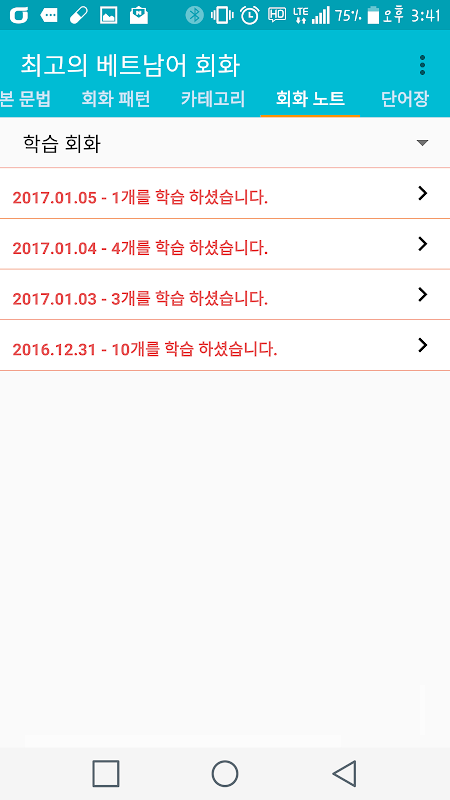 - 회화 학습 : Easy, Normal, Hard 단계별로 학습을 합니다.