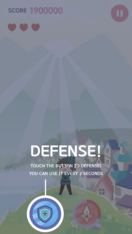 ● 화면 왼쪽 하단의 파란색버튼을 터치하면 캐릭터 방어기능 발동.