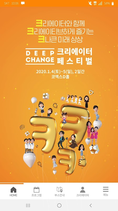 비전, 꿈, 공연, 라이프스타일 그리고 키즈 등 각 주제의 유명 크리에이터와 함께 이벤트를 즐기고 소통 할 수 있는 어플리케이션 입니다.
