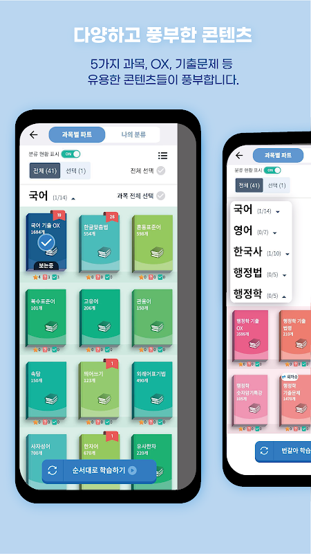 We bieden 7-10 jaar aan oude examenvragen voor belangrijke functies in de overheidssector (nationaal, Seoul Metropolitan Government, lokaal, politie, enz.) voor de overheidssector in groep 9, compleet met waar/onwaar-vragen, studiemateriaal en oplossingen, inclusief uitleg over goede en foute antwoorden. Toekomstige examens worden ook feilloos bijgewerkt, dus deze app is alles wat je nodig hebt om oude examenvragen onder de knie te krijgen.