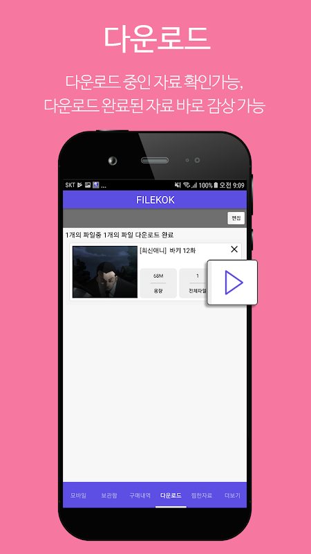 한번 다운로드 하면 보관함 (영화,드라마,동영상,애니,교육 등) 에서