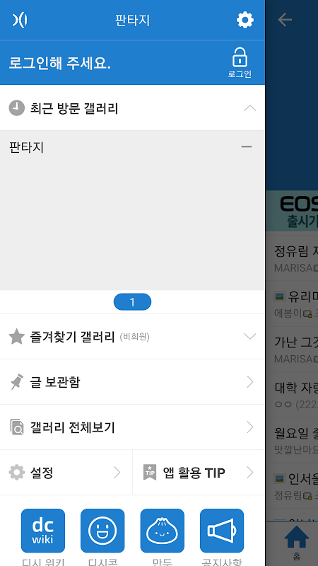 판타지 갤러리 앱은 국내 최대 커뮤니티 디시인사이드(dcinside) 갤러리 중 판타지 갤러리에 특화되어 있는 앱입니다. 갤러리 바로 접속, 커버 이미지, 추천 수 필터링 기능, 연관 디시콘 등 특별한 기능을 제공합니다.