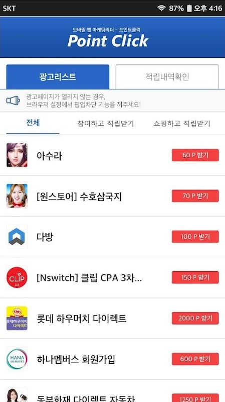 Click Point - Dit is een app voor het verdienen van advertentiepunten op de laadstationpagina.