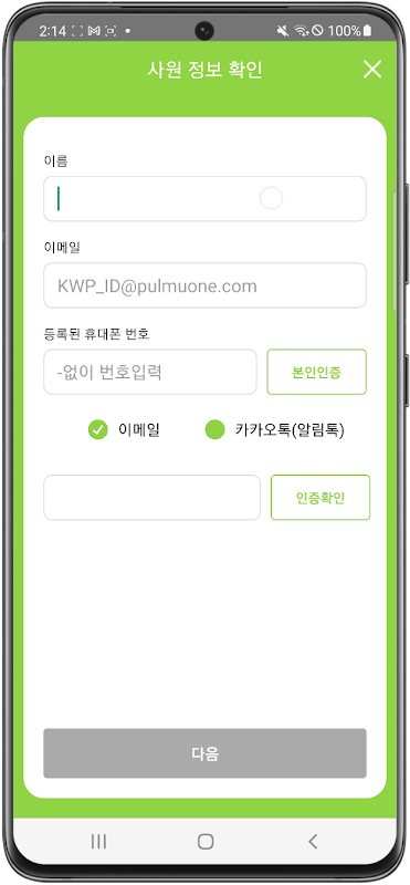 Door gebruik te maken van biometrische informatie van mobiele apparaten, beschermt Pulmuone werknemersaccounts veiliger met biometrische authenticatie bij het inloggen op het werksysteem van Pulmuone.