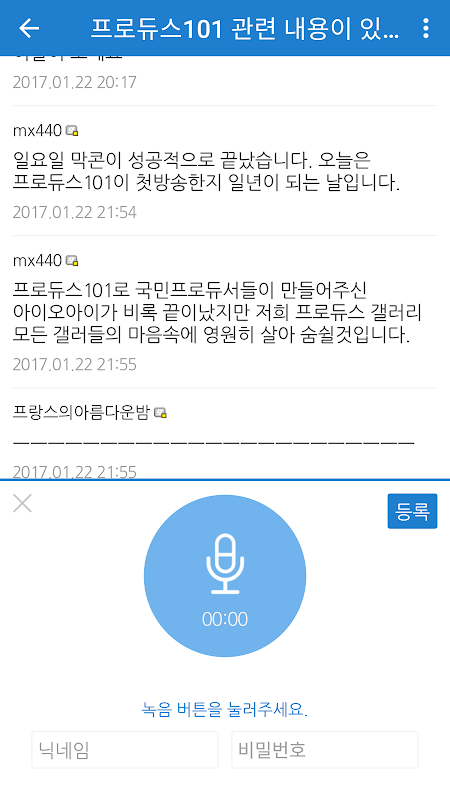 프로듀스101 팬들의 필수 커뮤니티 프로듀스101 갤러리!