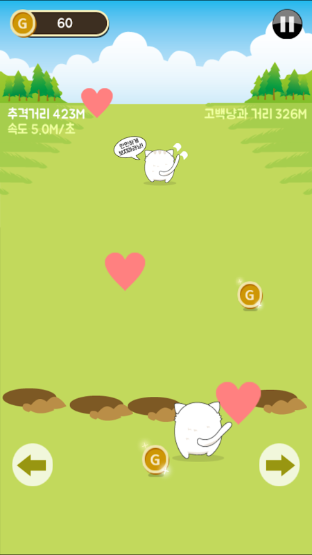 각종 방해물들을 피해서 고백냥이를 잡아 고백을 거절하세요 !