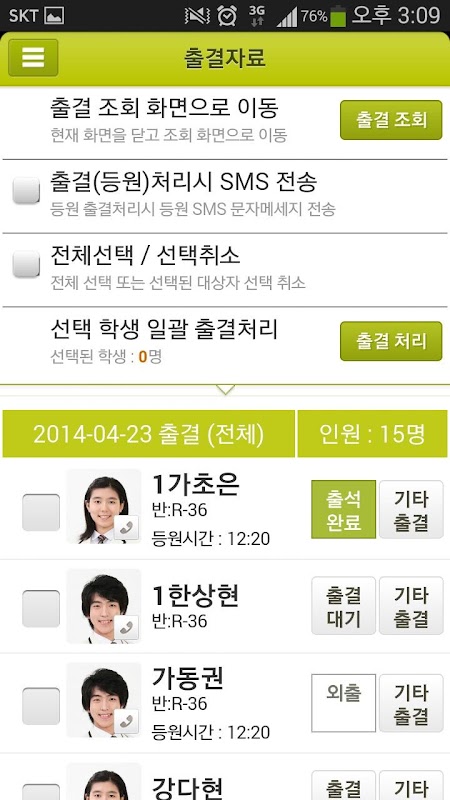 - 원생자료(원생 기본 정보, 반등록, 수납, 출결, 상담), 출결자료 조회 및 출결처리