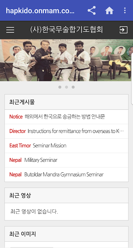 This app is the app in conjunction with "Korea Hapkido Martial Arts Association website.